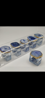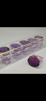 Stunning agate semi precious stone acrilique napkin holders comes in in a set of 6 pcs in a beautiful acrilique box .Available in 3 colors -blue,purple and brown