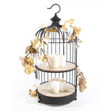 Large 2 tier Black Bird Cage with Orchids & Gold Petals - Large