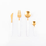 Bring classic elegance to your dining table with this chic cutlery set. The gold makes this set extra special, and the handles are available in blue, black, white, blush or gold to suit your tastes. Once you've chosen the perfect color set, pair it with our Bespoke crockery for a tasteful dinner party. Price on request. |
